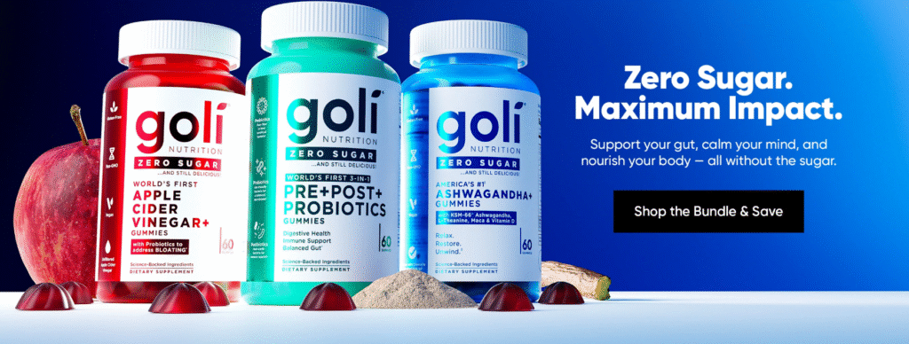 “Goli® ACV Gummies contain added Vitamins B9 & B12 for overall health. Bonus-they’re Delicious!