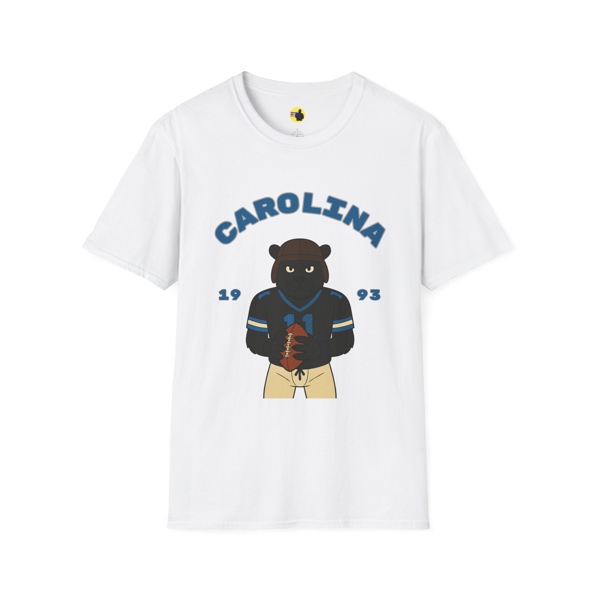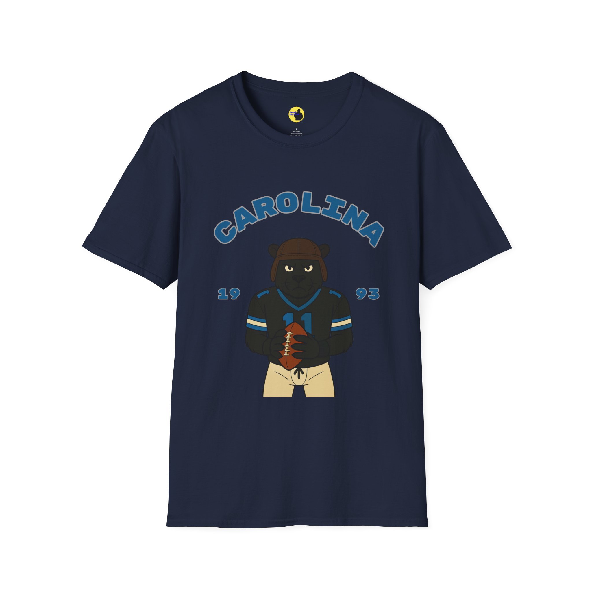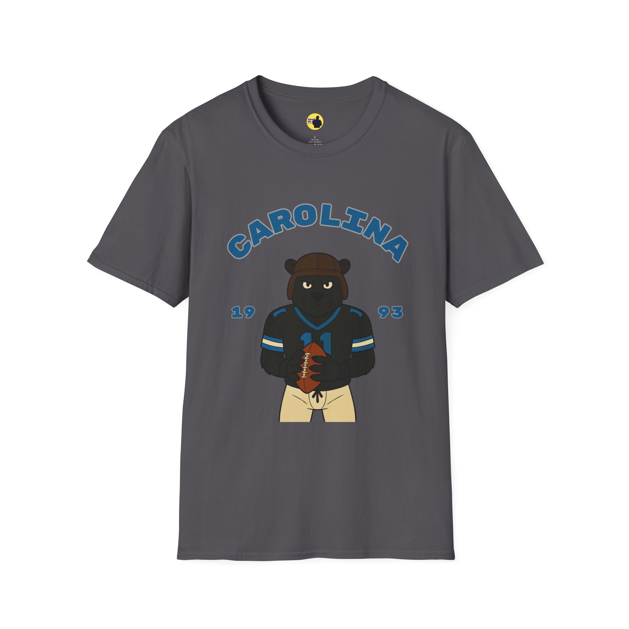 This lightweight cotton tee brings relaxed game-day energy to everyday wear. A stoic bear in a Carolina jersey holds a football beneath an arched “CAROLINA” banner and the year “1993,” giving the design a vintage collegiate vibe without feeling overdone. The classic crew neckline and clean fit sit close to the body without clinging, while the soft ring-spun cotton keeps the shirt breathable and comfortable from tailgate to coffee run. Subtle details — like the ribbed collar that keeps its shape, taped shoulders for a stable fit, and a tear-away label for scratch-free comfort — make this more than just a novelty tee. It’s a wearable nod to school spirit, weekend rivalry, and laid-back fandom that layers well under jackets or stands on its own.
