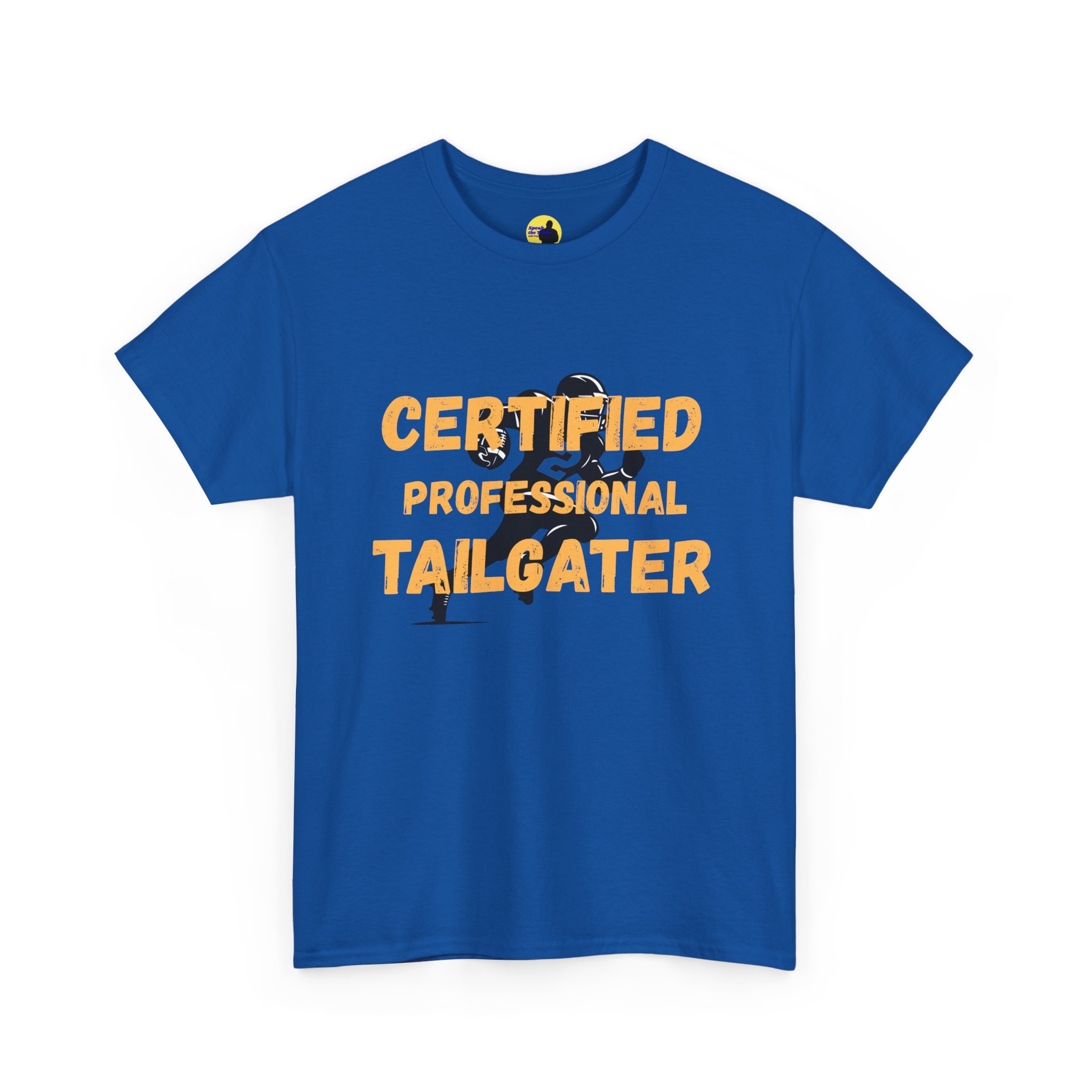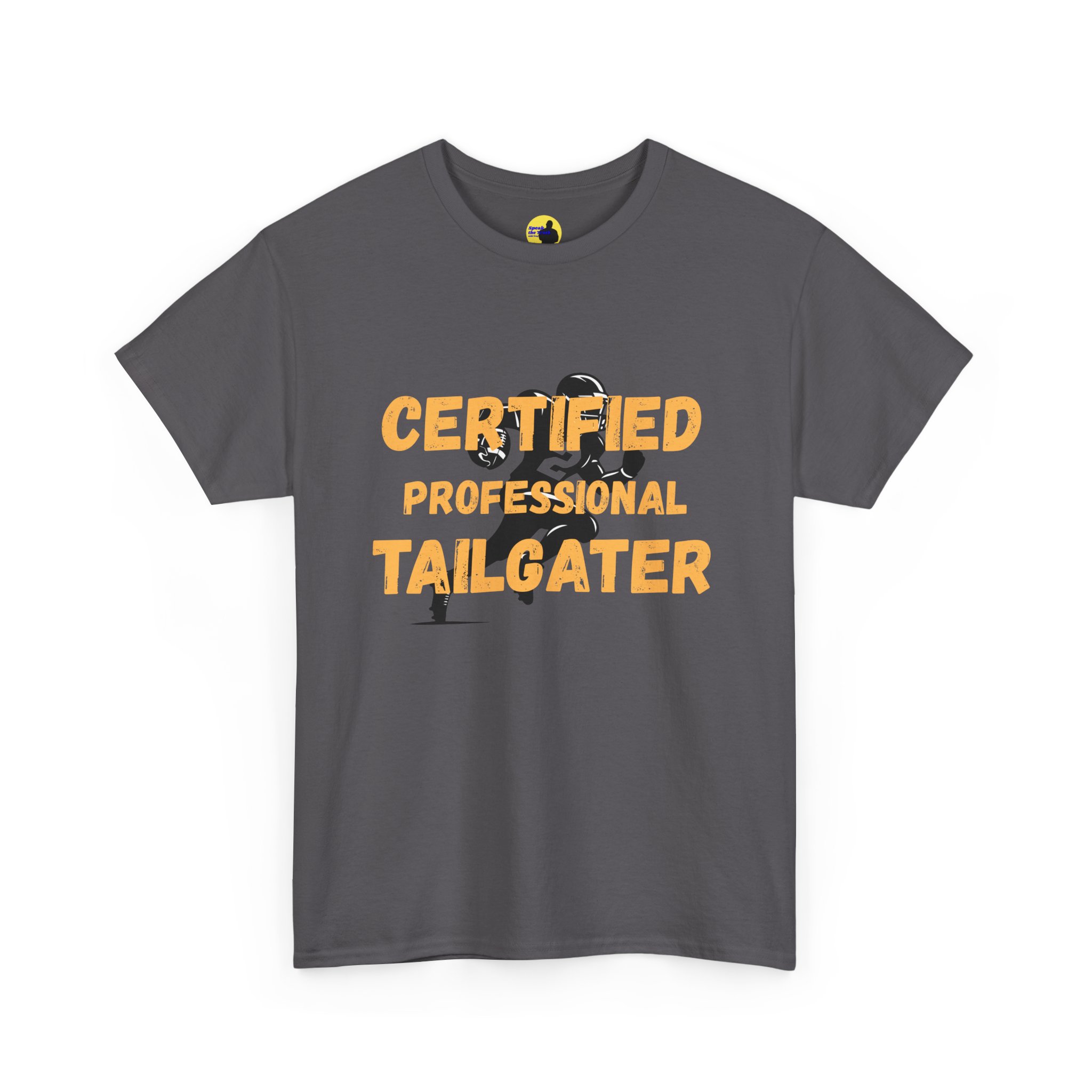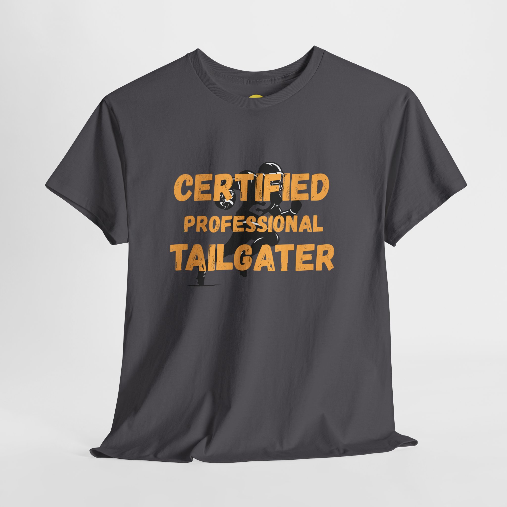 Slide into the lot with that familiar buzz — charcoal smoke, cold metal folding chairs, and the clink of coolers opening. This soft, mid-weight tee wears like a longtime favorite while the bold, weathered lettering—CERTIFIED PROFESSIONAL TAILGATER—puts the weekend’s mission on full display. It moves with you from pregame setup to halftime propane top-ups. The crew neck and classic fit keep things comfortable under jackets or over long sleeves. Subtle vintage distressing in the print nods to sun-bleached banners and game-day grit, not gimmicks. Wear it when you’re staking out the spot, manning the grill, or laughing with friends as the stadium lights warm the night.
