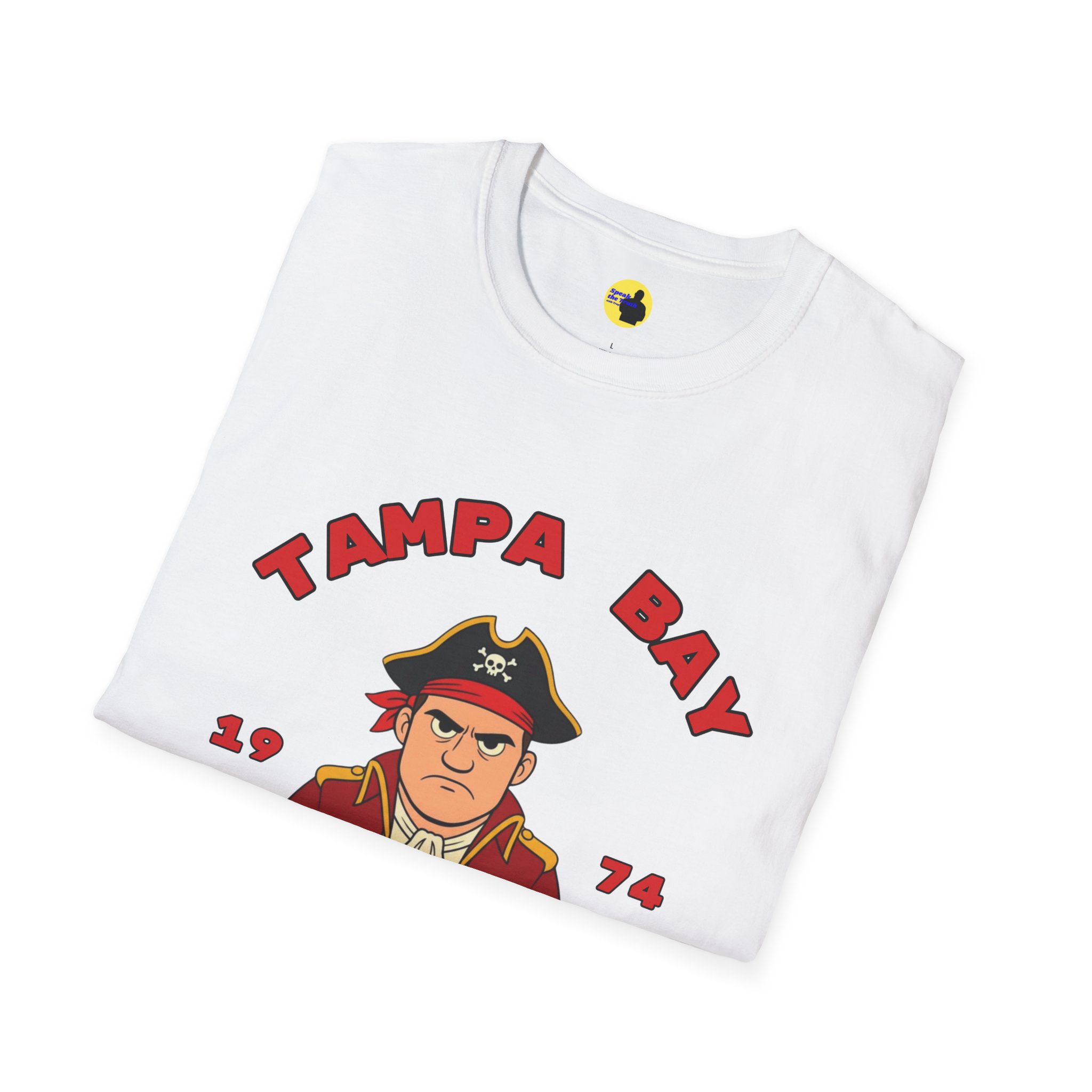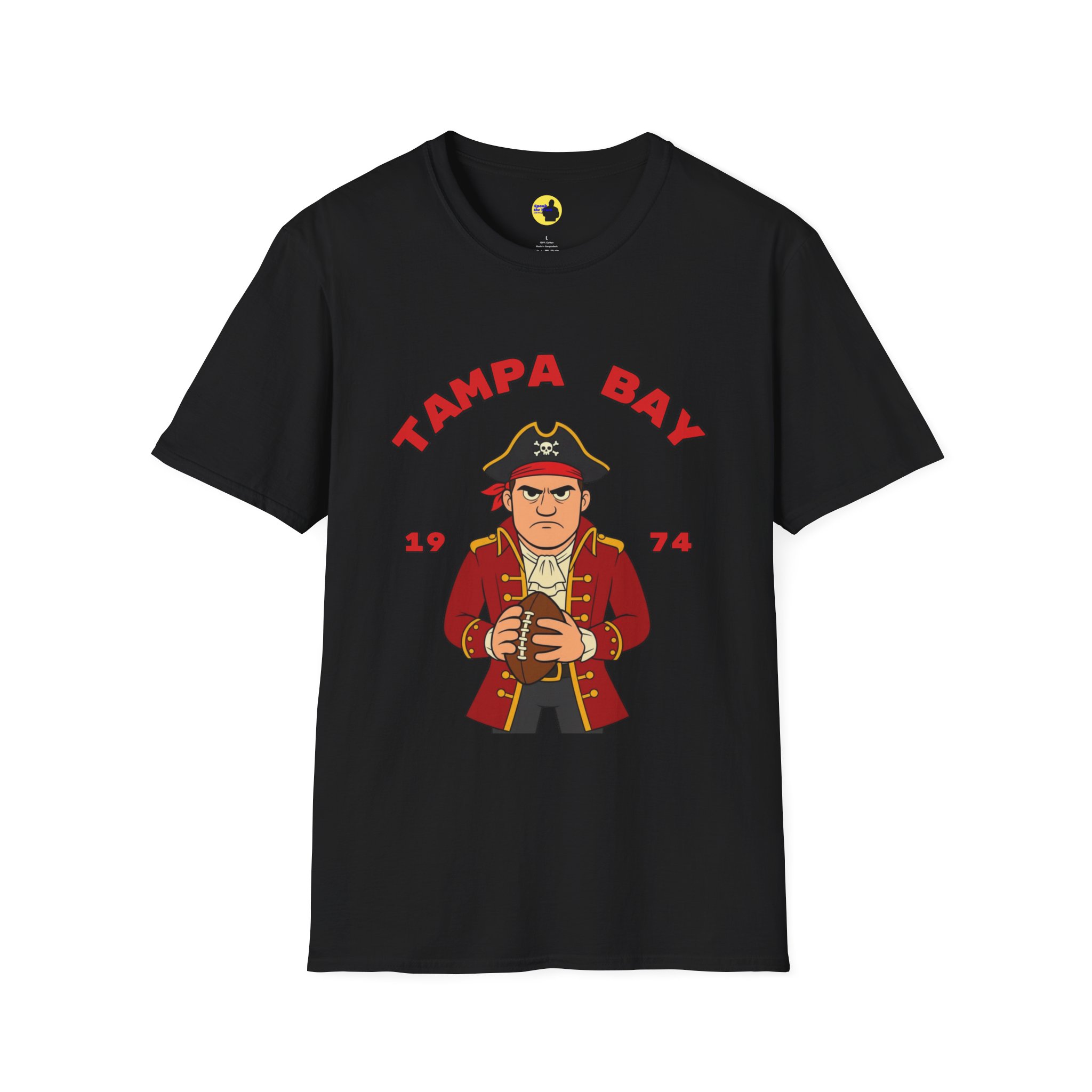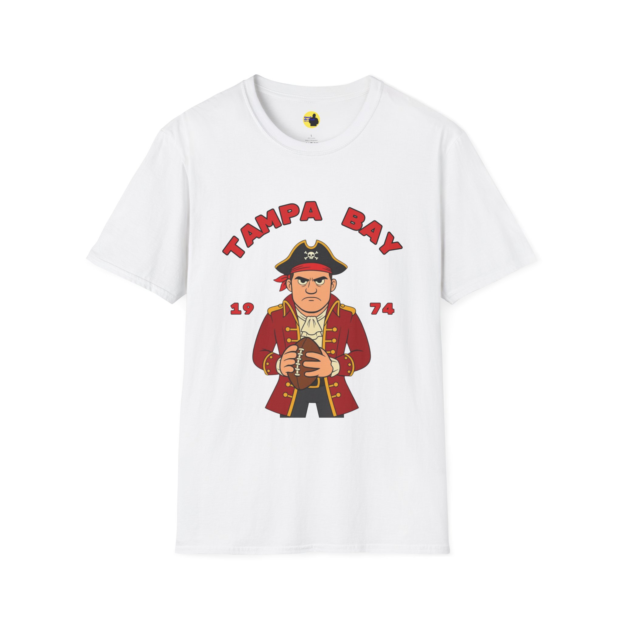A soft, lightweight tee that channels old-school Tampa Bay grit with a playful pirate quarterback graphic. The vintage-inspired illustration and bold arched lettering feel like a sideline relic — worn while cheering at tailgates, replaying classic highlights, or roaming city streets on game day. Breathable cotton and a classic crew cut keep the focus on comfort, while the clean print lets the artwork stand out. It sits right with fans who love retro sports styling and casual, lived-in looks.